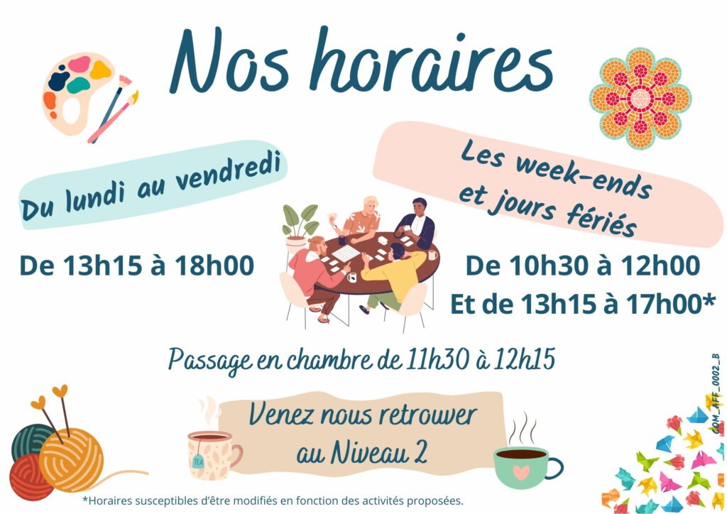 Le service Animation est à votre disposition pour votre temps libre, en dehors des soins.